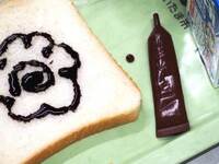 ペン状のココアスティックで、先端を切ると線状にココアが出てくるので、食パンに絵を描くことができます。
